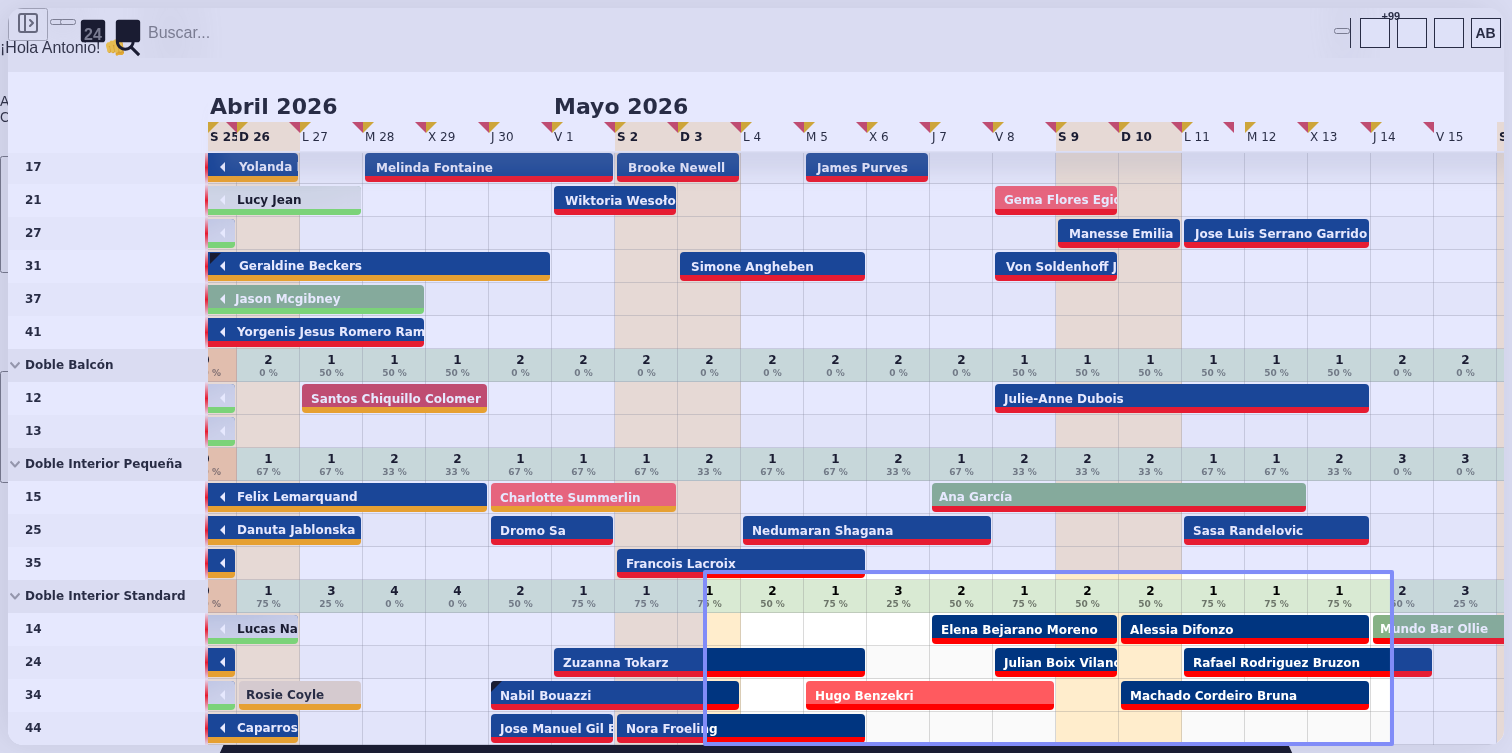 Se debería poder intercambiar dos reservas sin importar que coincidan en fecha de entrada y salida, siempre que haya disponibilidad para hacerlo, como en el ejemplo de la captura de pantalla